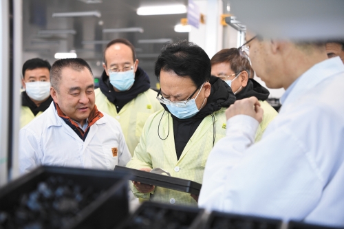 ?。保苍拢谷眨质∥瘯浘翱『5街袊鞴I(yè)集團(tuán)東北工業(yè)集團(tuán)有限公司,就深入貫徹黨的十九屆五中全會精神和習(xí)近平總書記視察吉林重要講話重要指示精神,全面落實省委十一屆八次全會精神,推動企業(yè)創(chuàng)新發(fā)展等情況進(jìn)行調(diào)研。吉林省委常委、副省長吳靖平,吉林省委常委、省委秘書長胡家福,吉林省委常委、長春市委書記王凱一同調(diào)研。  圖為景俊海等在東北工業(yè)集團(tuán)生產(chǎn)現(xiàn)場調(diào)研