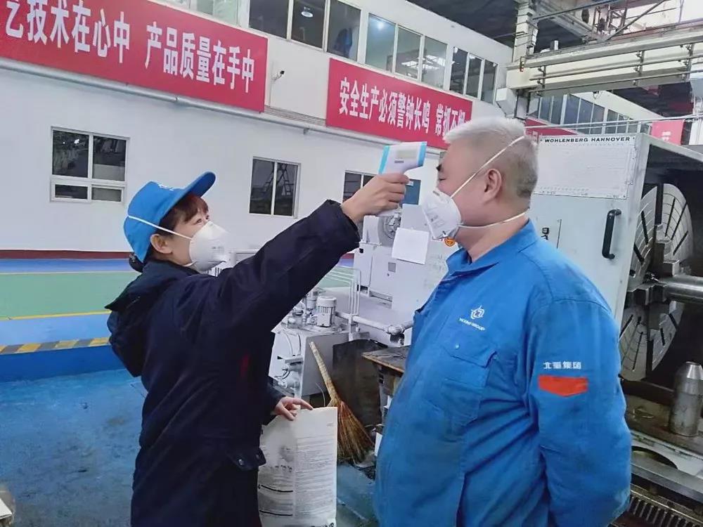 北重集團(tuán)為在崗工作人員準(zhǔn)備了洗手液、口罩、噴壺等消毒防護(hù)器材,對(duì)進(jìn)入廠房人員嚴(yán)格登記和測(cè)量體溫,對(duì)工作人員一日四次檢測(cè)體溫并進(jìn)行記錄,在做好疫情防控的同時(shí)保證生產(chǎn)。