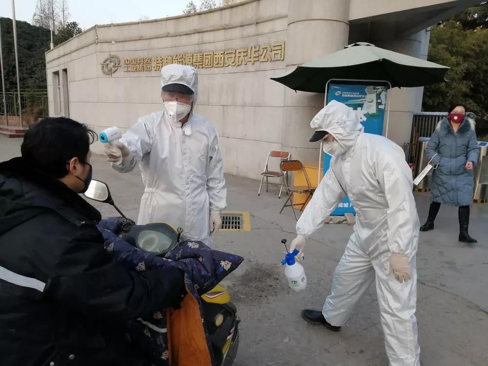 北化研究院集團(tuán)慶陽(yáng)化工利用企業(yè)微信公眾號(hào)發(fā)布防護(hù)常識(shí),嚴(yán)格控制出入廠(庫(kù))區(qū)人員,對(duì)入廠人員進(jìn)行體溫檢測(cè),禁止外來(lái)車輛進(jìn)入廠區(qū),最大限度地確保公司安全。同時(shí),對(duì)各單位(部門)配發(fā)消毒液和口罩,定時(shí)對(duì)作業(yè)場(chǎng)所進(jìn)行消毒。