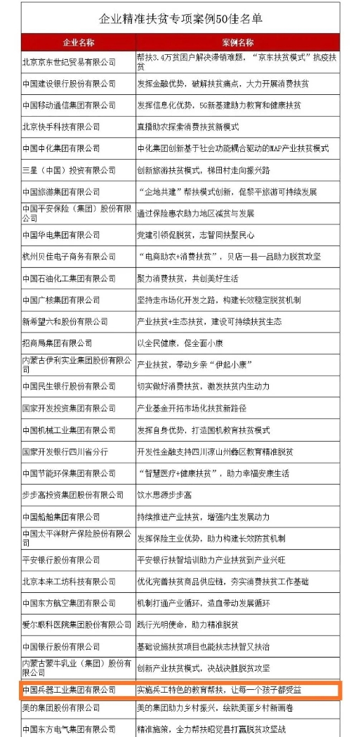 兵器工業(yè)集團(tuán)教育扶貧獲評(píng)國務(wù)院扶貧辦2020年企業(yè)精準(zhǔn)扶貧專項(xiàng)案例“50佳” |