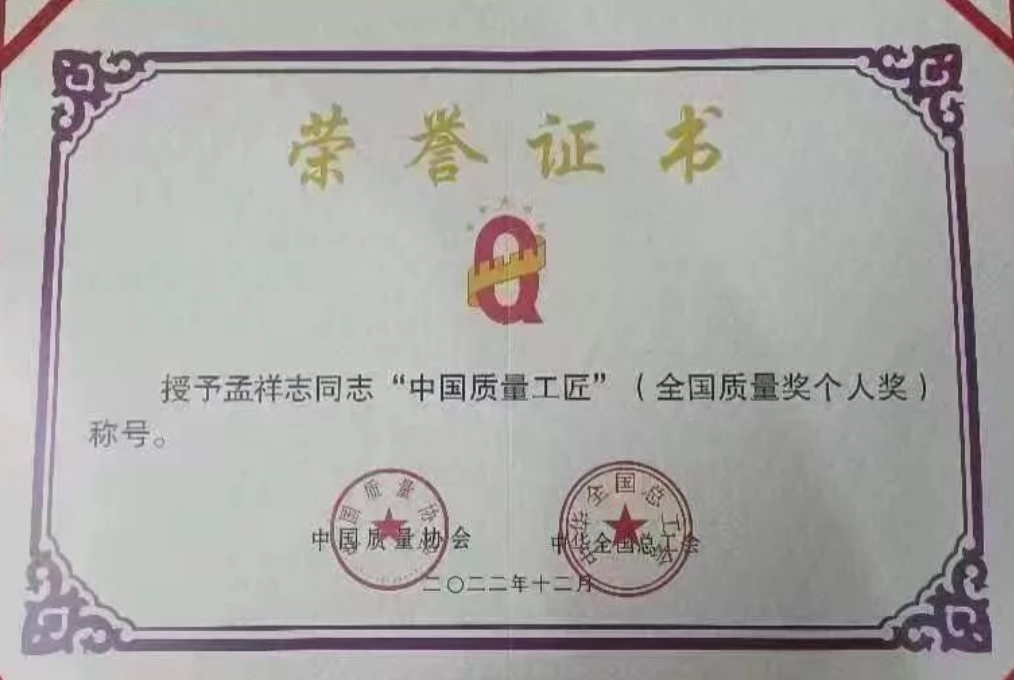 兵器工業(yè)集團(tuán)孟祥志榮獲“中國質(zhì)量工匠”稱號(hào) |