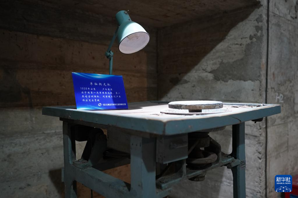 這是5月16日拍攝的中國光學(xué)歷史博物館內(nèi)收藏的一臺單軸拋光機。
