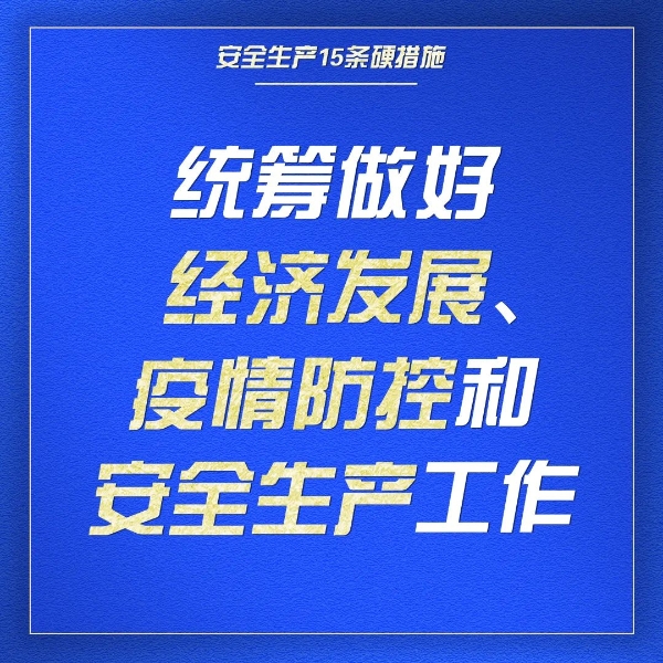為認真貫徹落實習(xí)近平總書記關(guān)于安全生產(chǎn)重要指示精神和黨中央、國務(wù)院決策部署,近日,國務(wù)院安委會梳理相關(guān)法律法規(guī)已有規(guī)定、以往管用舉措和近年來針對新情況采取的有效措施,制定了進一步強化安全生產(chǎn)責(zé)任落實、堅決防范遏制重特大事故的十五條硬措施,部署發(fā)動各方面力量全力抓好安全防范工作,為黨的二十大勝利召開創(chuàng)造良好安全環(huán)境。
