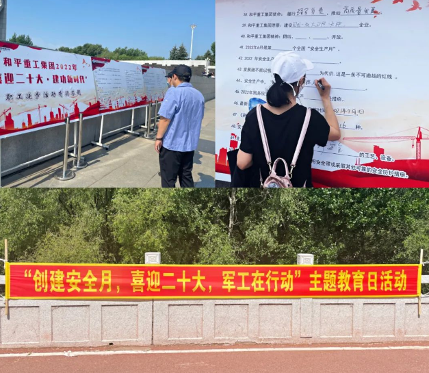 和平重工集團(tuán)在安全生產(chǎn)月期間組織開展了“創(chuàng)建安全月 喜迎二十大 軍工在行動(dòng)”主題教育日活動(dòng),現(xiàn)場懸掛宣傳橫幅標(biāo)語,工作人員為職工們發(fā)放安全知識宣傳冊、扇子等宣傳用品,并在現(xiàn)場組織了安全知識有獎(jiǎng)答題環(huán)節(jié),調(diào)動(dòng)廣大職工參與的積極性,大力營造了“關(guān)愛生命、關(guān)注安全”的良好氛圍。