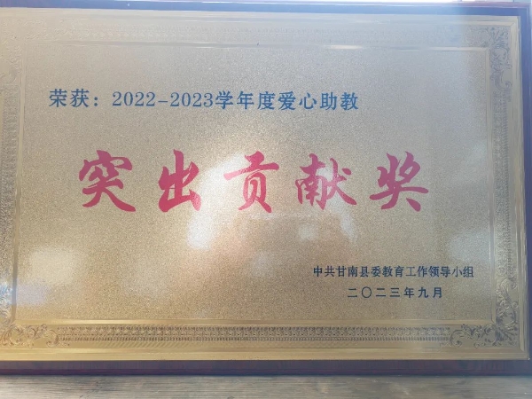 9月7日,在第39個教師節(jié)來臨之際,黑龍江甘南縣委教育工作領(lǐng)導(dǎo)小組授予中國兵器工業(yè)集團(tuán)有限公司愛心助教“突出貢獻(xiàn)獎”,以表彰兵器工業(yè)集團(tuán)在教育領(lǐng)域為甘南縣鄉(xiāng)村振興作出的突出貢獻(xiàn)。