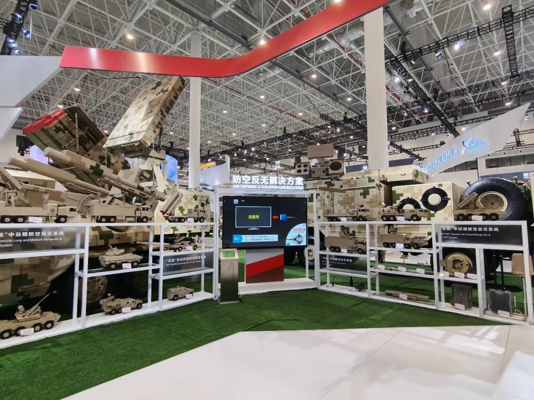 防空反導體系重點展示天龍一體化防空導彈武器系統、激光武器系統、彈炮結合防空武器系統等一系列防空武器,展現該體系點線面兼?zhèn)?,為防護單位構建起“金鐘罩”“鐵布衫”的防護效果。